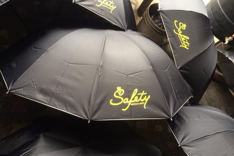 Custom logos of your business printed on items such as umbrellas, pens or any other items for your brand marketing.